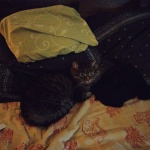 Ganz viel Tiny dieses Mal ~ die zwei Rabauken ganz unschuldig ~ Madamchen am Bett bewachen und später dann seelig am zwischen den Beinen kuscheln. Endlich jemand der liegen bleibt und nicht wegläuft 😉