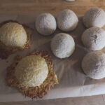 Wenigstens die Brötchen sind was geworden. Hatte einmal Kartoffelbrötchen gemacht und einmal ganz normale gestern bzw. 2 Käsebrötchen bei. Bei den Kartoffelbrötchen muss ich das nächste Mal doch die Kartoffelquetsche bemühen. Das wird schlichtweg feiner. Hatte die nur mit einer Gabel zerquetscht. Ist mir etwas zu grob.