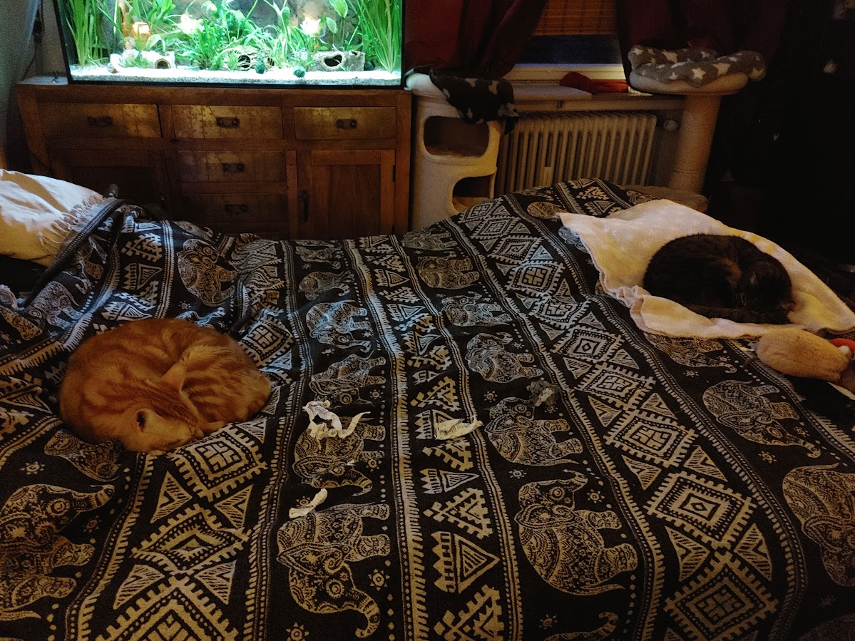 2 Wochen Fremdkatzer bespaßen sind rum,seine Leute sind wieder da. Ich kann also gleich in Ruhe meine Haare mit Henna versorgen ^^ Das wär die Tage sonst etwas doof gewesen vom timing her.