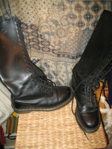 Nein,ich trage nicht nur Docs sondern auch andere ^^ Aber irgendwie sind meine “normalen” Halbschuh verschutt gegangen letztes Jahr beim Umzug. Ich hab die die Tage schon verzweifelt gesucht,lassen sich nicht finden. Sprich,ich muss Schuhe shoppen (welch grusel *lach*) Stehen vor leichte Sommerschuhe auf dem Plan … und wenn ich dann schon mal dabei bin,kann ich auch noch andere einpacken (^.-) In der Hoffnung das mir dann nicht die aktuelle Schuhmode mit unmöglichen Modellen ein Strich durch die Rechnung macht.